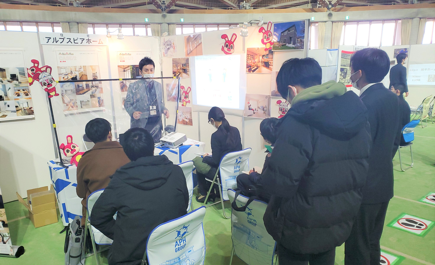 現地での合説は、久々に学生さんに直接お会いできました!会場内も様々な制限がかかる中、アルプスピアホームのブースは終始ほぼ満席状態!沢山の学生さんが来てくださいました!