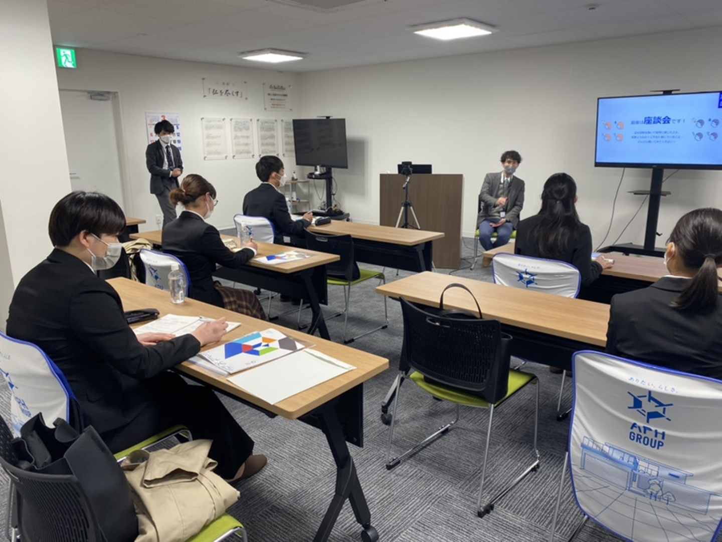 「コロナ禍でもアルプスピアホームの雰囲気を直接感じていただける場がつくりたい!」という思いで、現地&WEBを同時に開催!午前・午後合わせて、【現地 8名】【オンライン 29名】の学生さんが参加してくださいました!(※コロナの状況を踏まえ、現地参加は条件制限あり)