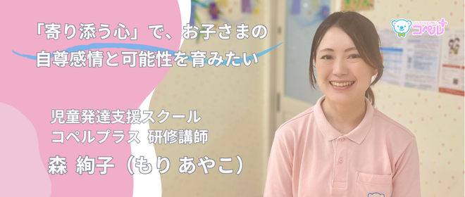今回ご紹介するのは、コペルプラス研修講師を務める、森 絢子(もり あやこ)先生です。学生時代に「人の気持ちに寄り添い、力を引き出すサポートがしたい」という想いで養護教諭・介護福祉士の資格を取得した後、介護施設で社会人としてのキャリアをスタートした森先生。短大卒業後、「人生の終わりに寄り添い、サポートする」介護福祉士の仕事に従事した後、改めて「ケアを必要とする子どもたちを支えたい」想いが膨らみ、児童発達支援分野に絞って転職活動をしたといいます。「2019年の入社当時、療育については知識・経験ゼロからのスタートでした」と語る森先生ですが、今では講師約1,300人の中で、わずか20名ほどが担う...