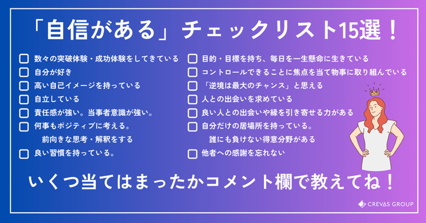 自信のある人の共通点15選の全てのチェックが埋まった方はぜひコメントで教えてください!✨