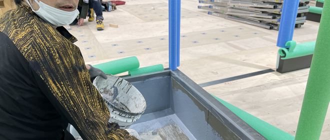 当社のメンバー左官やタイル、自分たちで仕上げたものに対しての愛情が強いです。自分がかかわった現場はそのあとどうなったか気になるもの。仕上げた仕事がメディアで取り上げられたり、雑誌で高い評価を得ているとガッツポーズします。当社オリジナルの仕上げ方法もあり、他では見られない左官仕上げも多数あります。休日にコッソリ見に行く人もいます。