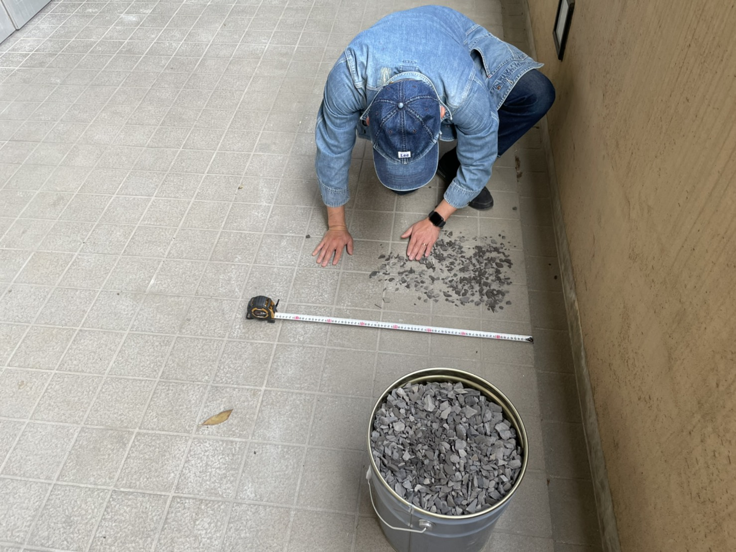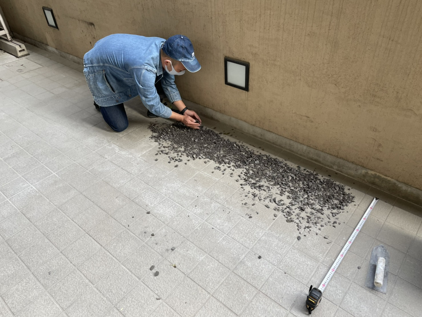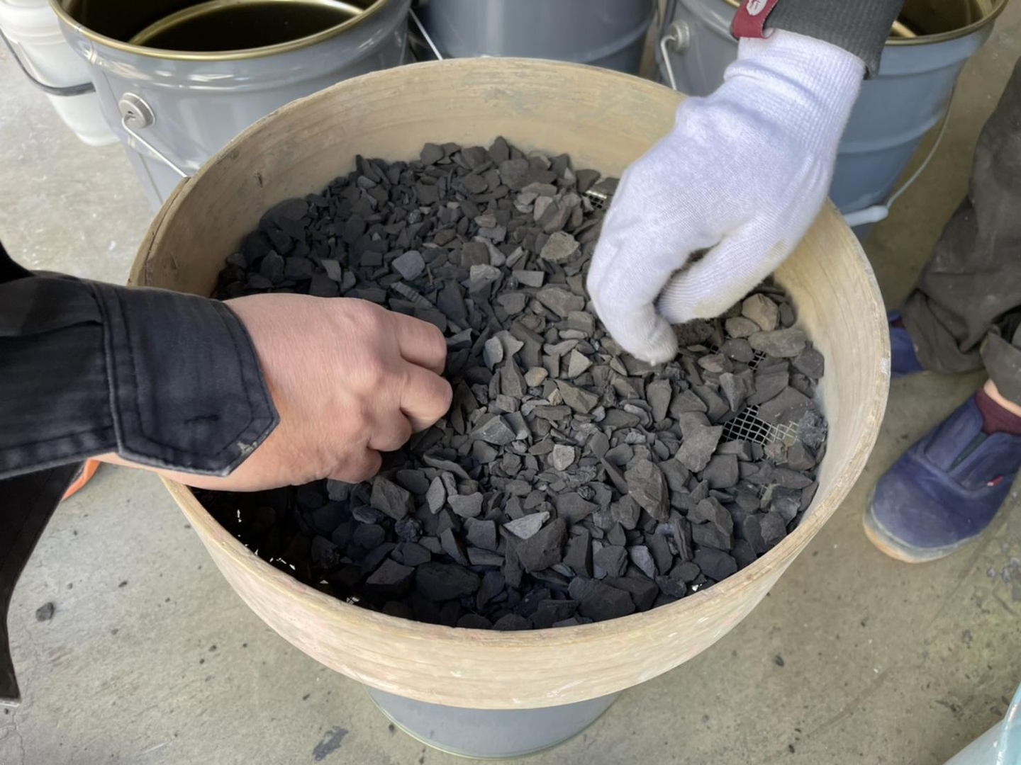 群馬の瓦の欠片を何か再利用できないかということで、左官のチカラを活かすことになりました。