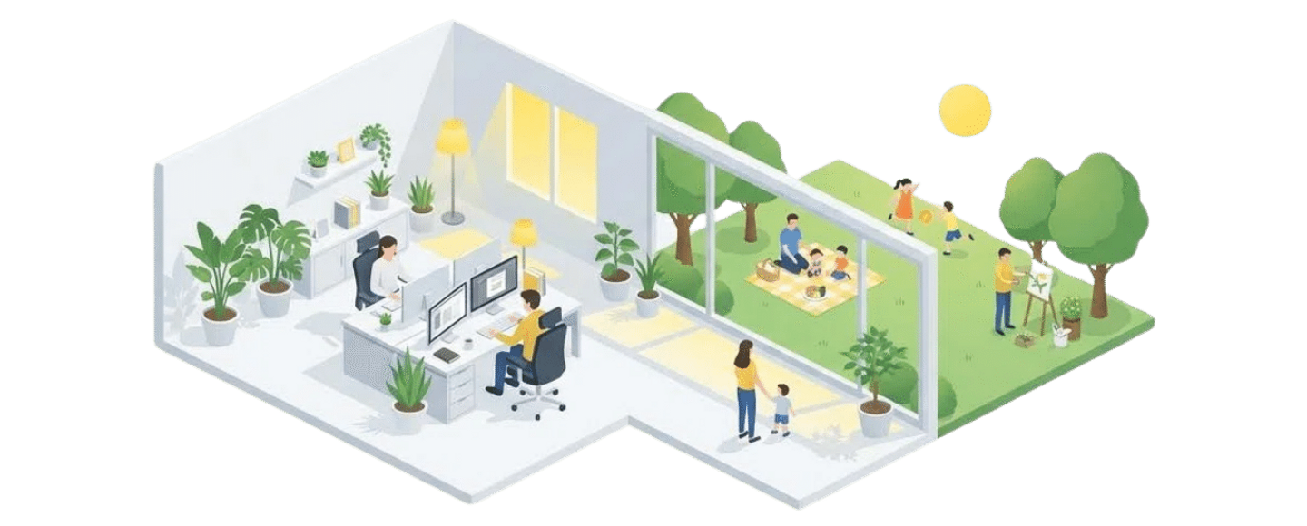 在宅勤務やリモートワークが可能な環境では、通勤時間の削減により家族との時間確保や家事分担が実現できており、特に子育て世代や共働き夫婦にとって大きなメリットとなっています。