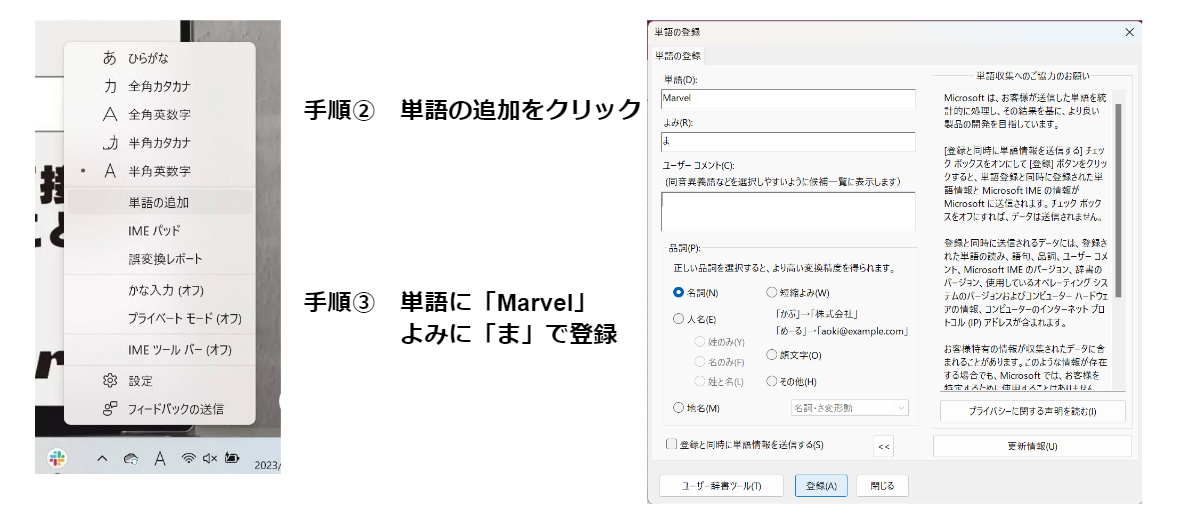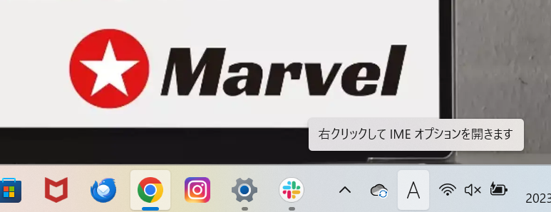 ①手順1 タスクバーの通知領域の「IME」を右クリック