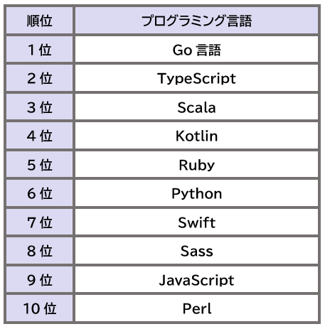 ■言語別の平均年収ランキング「paiza(パイザ)『転職における言語別の平均年収』」