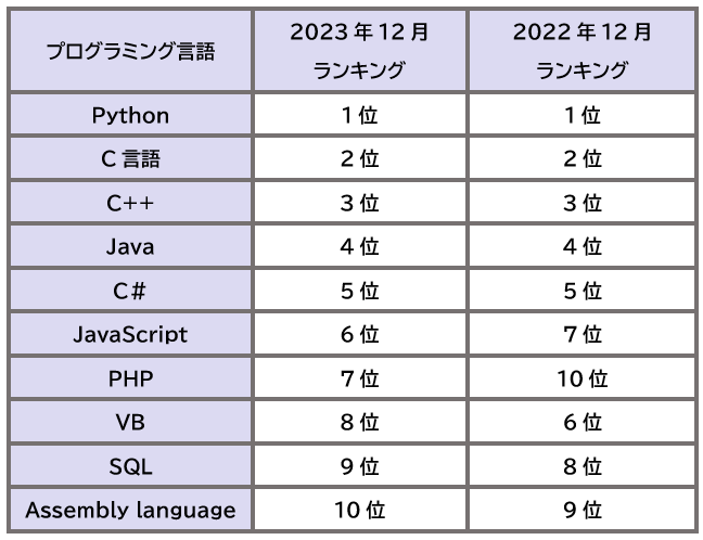 ■2023年12月最新人気プログラミング言語ランキング「TIOBE『プログラミングコミュニティーインデックス』」※検索エンジンのデータを基にした海外のプログラミング言語ランキング