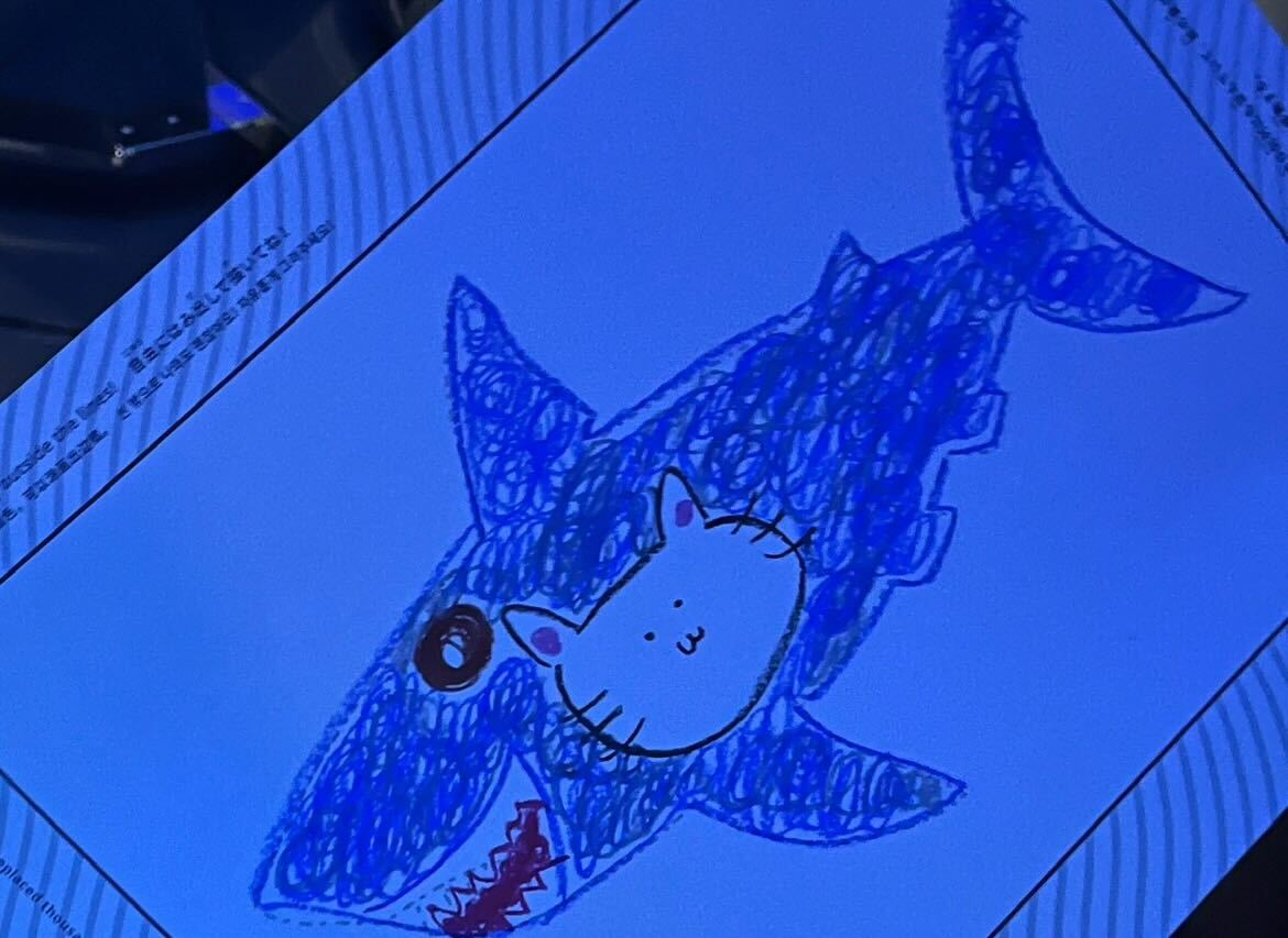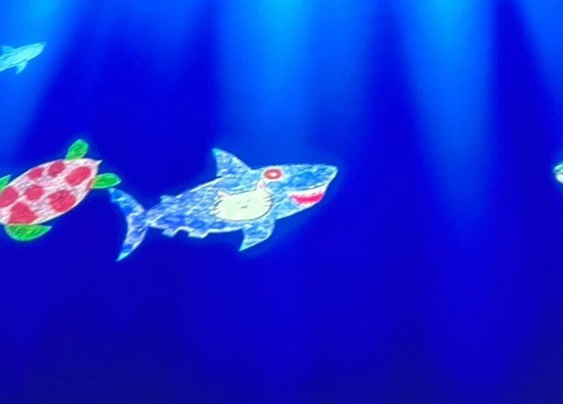 自分がクレヨンで描いた魚たちが、空間を泳ぎだすお部屋です🐟🪼🦈🪸🐢