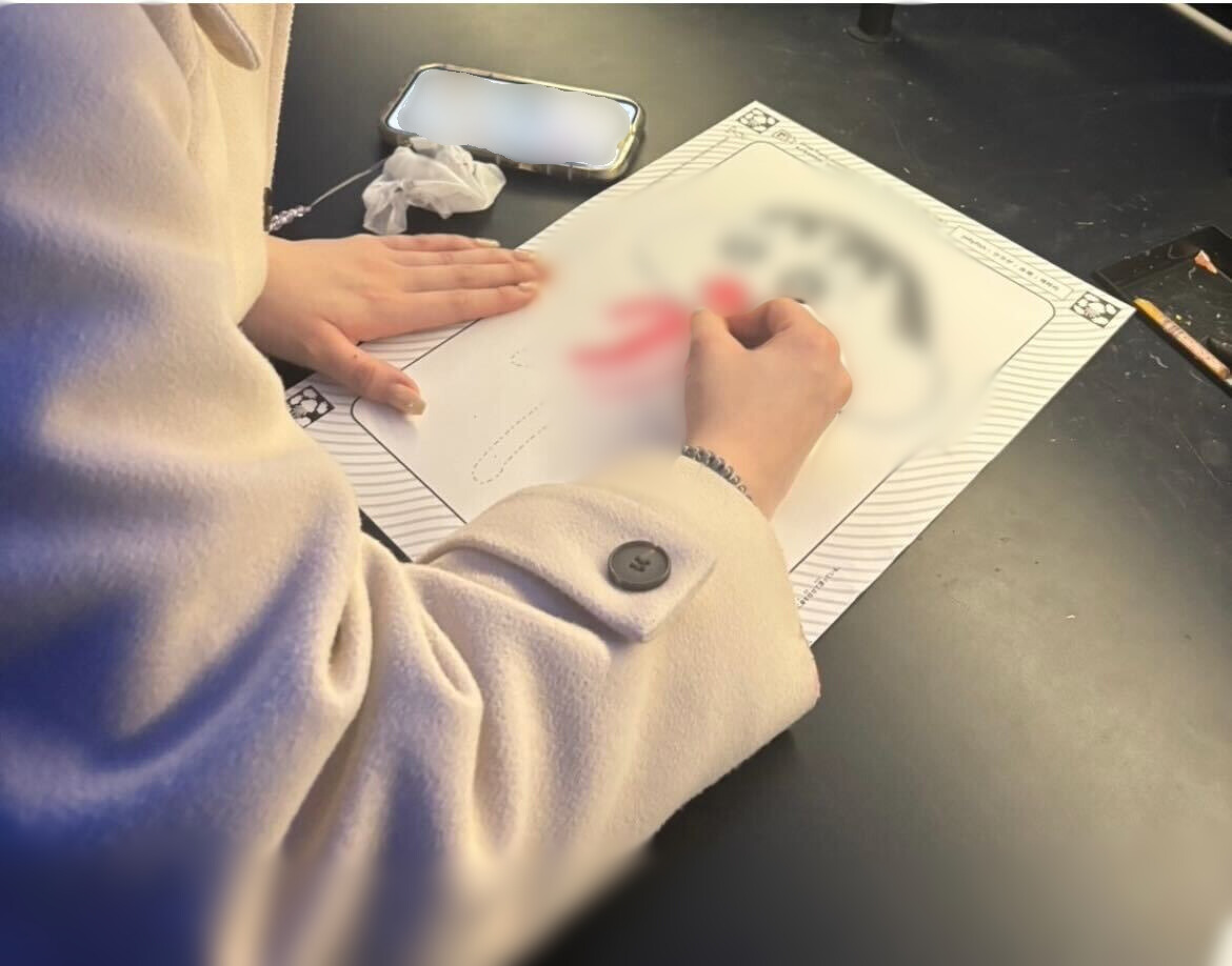 サメ、クラゲ、カメ、イソギンチャクなど、様々な種類の魚から一つ選び、塗り絵をしていきます!わが子が泳いでる姿、愛くるしいです🥺🙌高橋さんのサメ(というか🐰?)すっごくかわいいです!