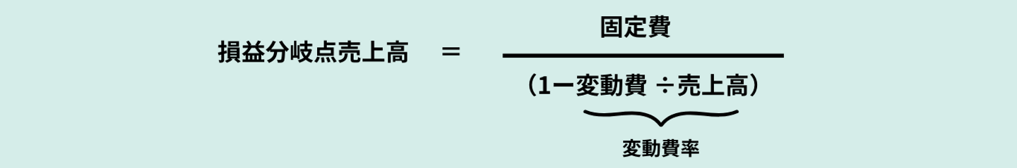 固定費 ÷ (1 - 変動費率) = 損益分岐点売上高