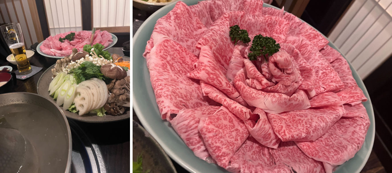 お皿に盛られた霜降り和牛はもはや大きなバラのよう…。