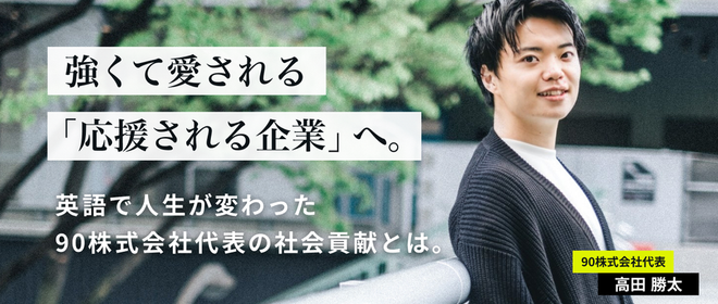 私たちは、日本の英語教育を再構築する”インパクトスタートアップ”です! 長い月日を費やしたにもかかわらず、日本人は自信を持って英語を話せる人が極端に少なく、それにより世界に対するの日本の影響力は低下しています。 そんな状況を打破するために行なっているのが、バイリンガル日本人講師×習慣化を強みにした、”英語コーチングスクール「90 English」”事業。 "英語ができる”という自信を醸成し、誰かの挑戦を強力に後押しします!