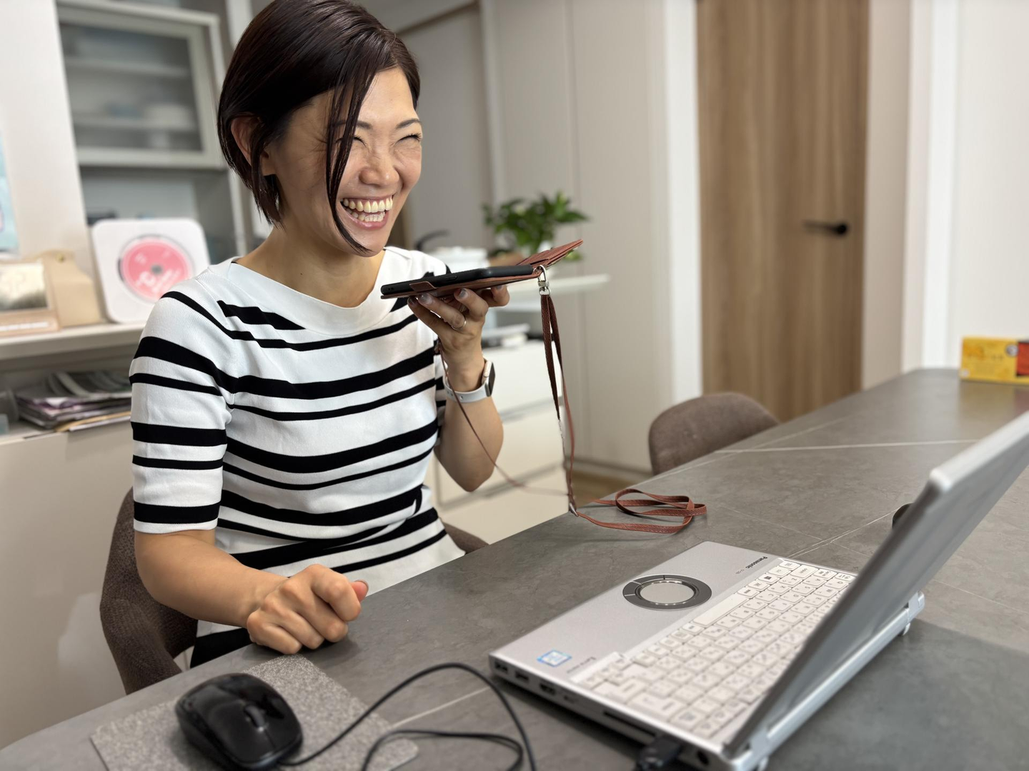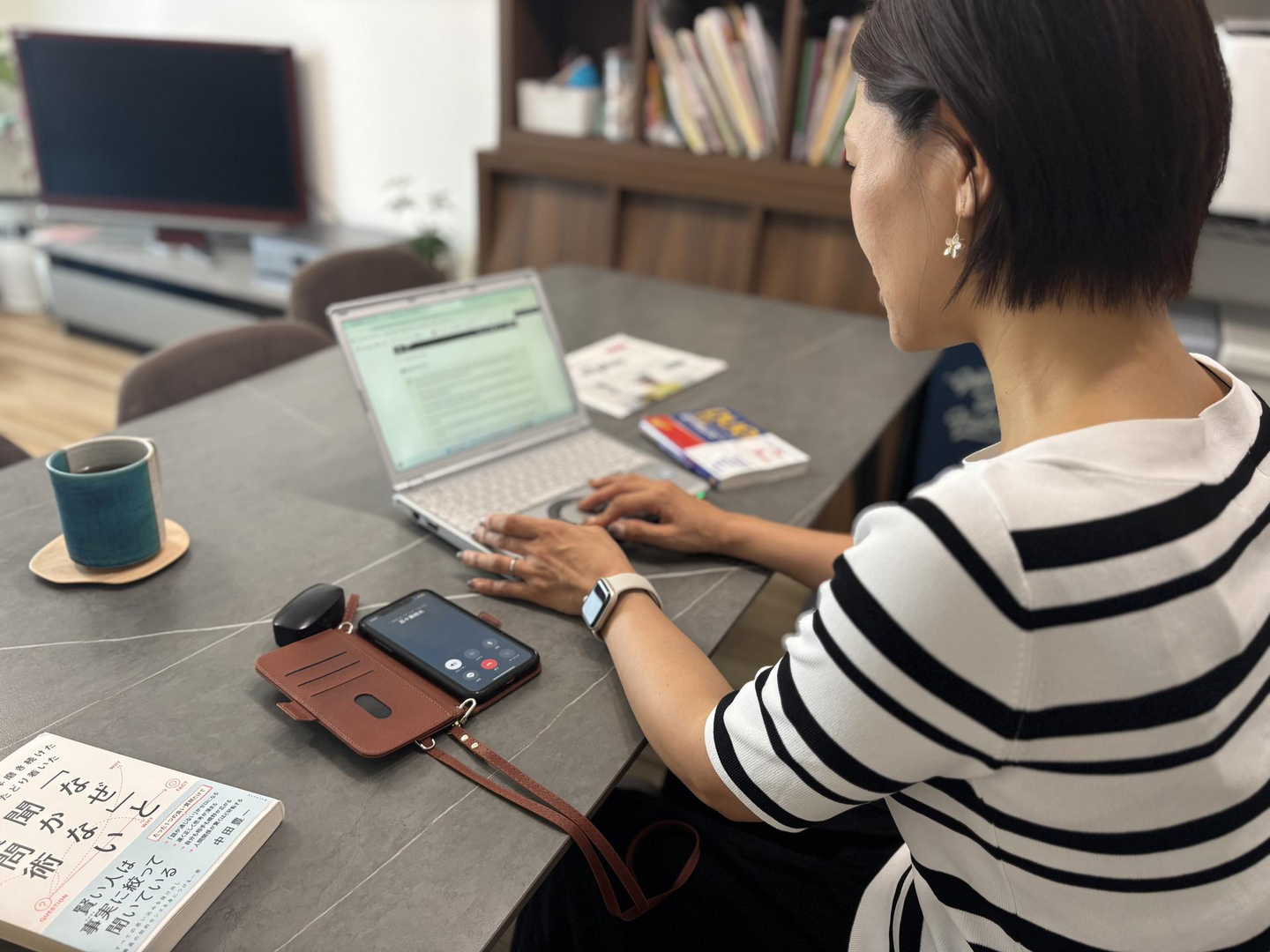 90 Englishは忙しい人でも続けられるように設計されています。生徒さんとのやりとりも専用アプリではなく、あえてLINE通話を使用。顔を出さなくてOK。だから場所を選ばずに生徒さんが受講できる。続けることが一番難しいですからね。