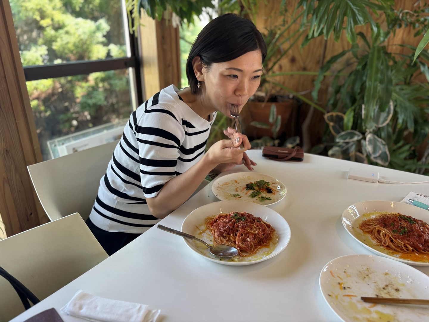 かなコーチ:このお店10年以上前から通ってて。結婚記念日などのお祝いごとの際は、夫婦でも来ますね。お店の奥さんのシェフがパティシエでもあるのでデザートも美味しいんです。今日も迷わずデザートまでいきましょう。今思うと、こういうところに家族へ遠慮せずランチに来れるのは自分で稼いでいるからですね。英語コーチしていて良かったです(笑)