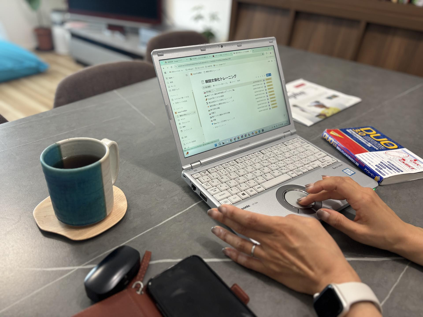 かなコーチ:起床後はすぐさまPCへ。生徒さんとのやり取りが楽しく、起きたらすぐに開いちゃいます。時間が許すまで生徒さんの提出課題を添削。