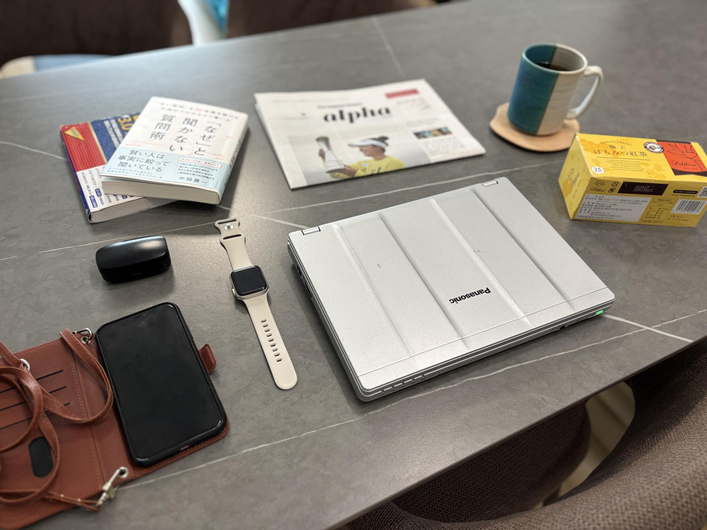 かなコーチ: 使っているのは全部で9個ぐらいですね。これだけあればどこでもいつでも働けるので、こどもが大きくなったら沖縄でワーケーションするのが小さな夢なんです。