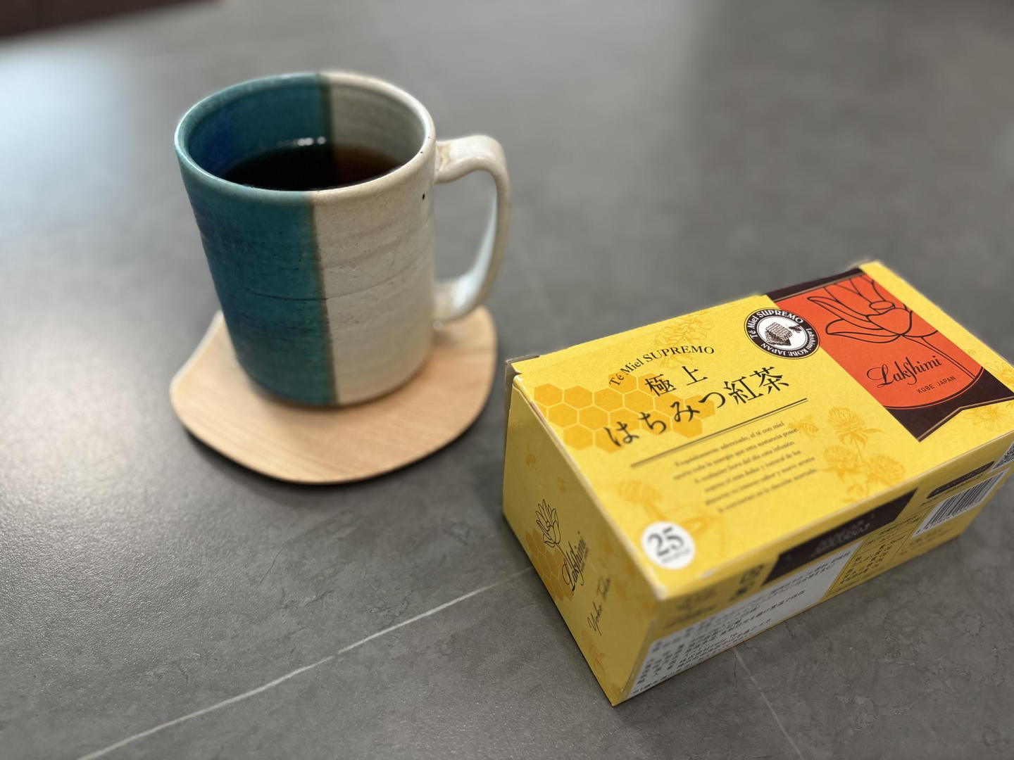 このカップではちみつ紅茶を飲むのが至福のとき。関西のママ友界隈だと割と有名な紅茶で、本当に美味しい。