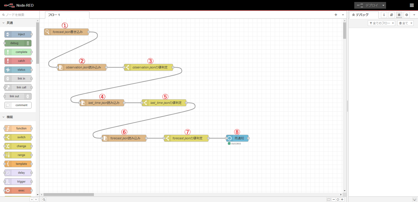 ①forecast.jsonの書き込みという名称ですが、実際はforecast.jsonのファイル変更を監視しています。