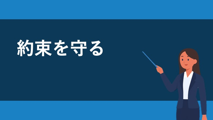 「当たり前じゃん!」と思う方も中にはいらっしゃるかもしれませんが、約束を守ることは、信頼関係を築く上で一番重要なことだと思います。