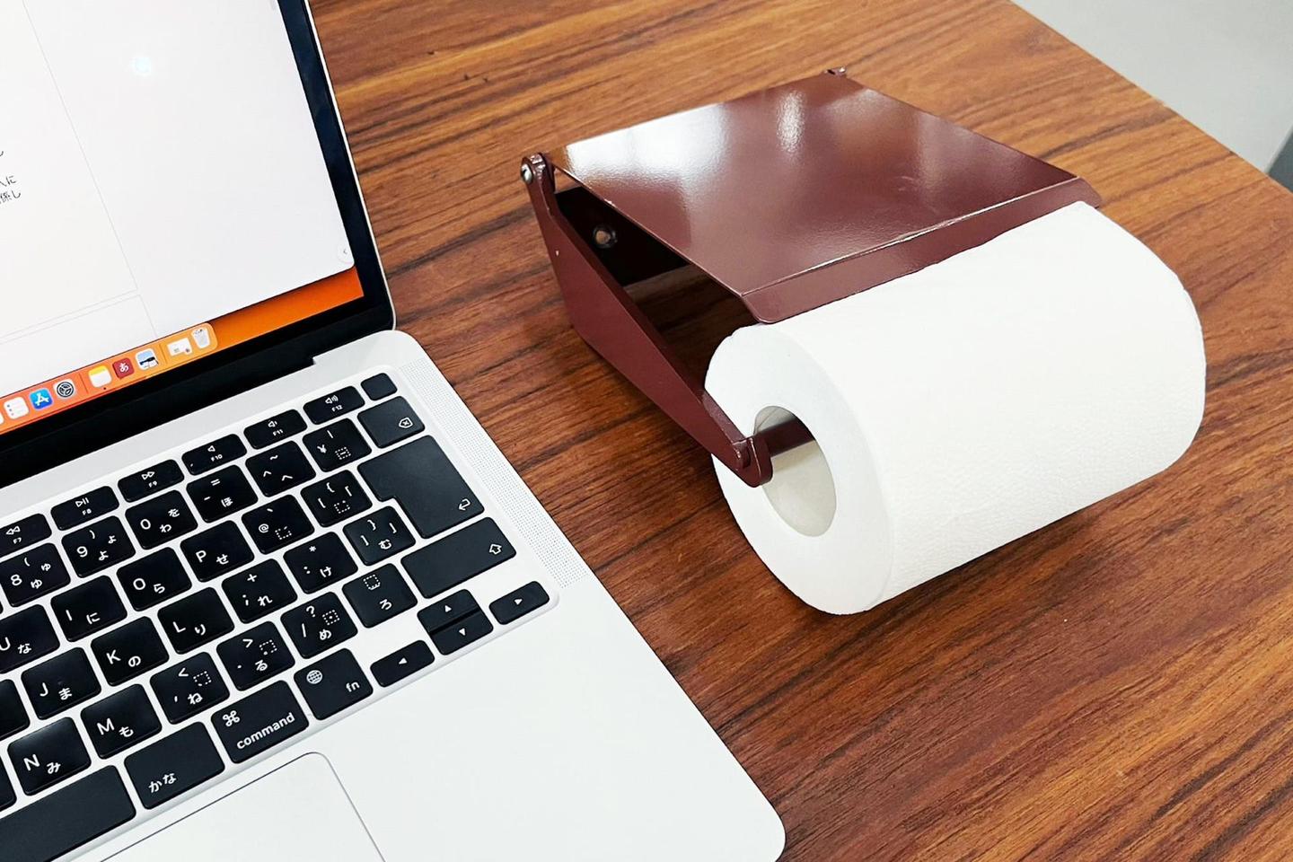 改めて、この商品の魅力ってなんだろうと、約1ヶ月間デスクにペーパーホルダーを置いて仕事中に眺めながら過ごしました。自分が最初に感じた印象に対して、どうしてそう思ったのかをもう一歩踏み込んで考えました。すると、最初はレトロで可愛いなという感想しか出てこなかったところから、棒を引っ掛ける仕様が簡易的でおもちゃっぽいから懐かしさを感じるのかもと細部に目を向けて考えられるようになったのです。