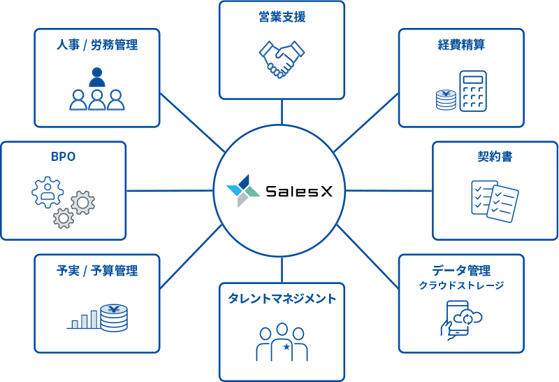 つまり、SalesXの3事業はそれぞれが独立したサービスではなく、クライアントの成長ステージに合わせて相互に連動する仕組みをつくり上げることができ、結果として、売上や組織力、業務のデジタル化といった多方面から継続的な成長を支援することが可能となります。ここからは各事業についてより詳しく解説していきます。