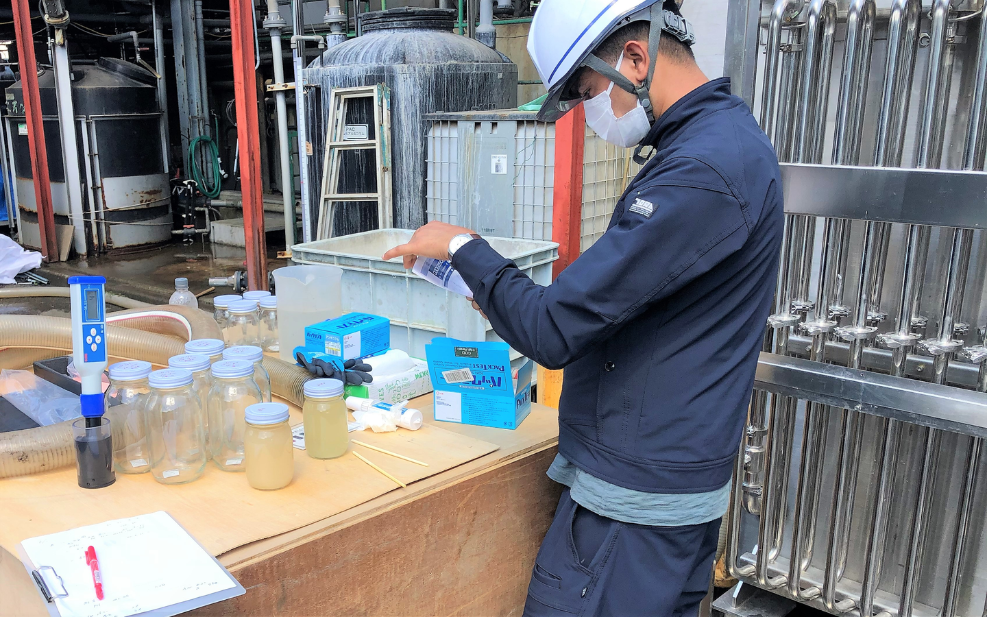 大型のデモ機は移動や設置が大掛かりになりますが、実際の環境で凝集剤の種類や量を調整し試験を繰り返すことで、より適切なご提案が可能となります。