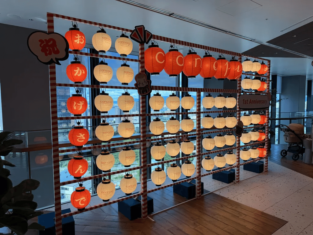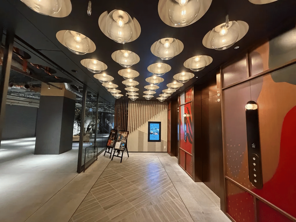 EVで11FのReceptionに上がると、照明はたこ焼きをモチーフにしており遊び心を感じました。