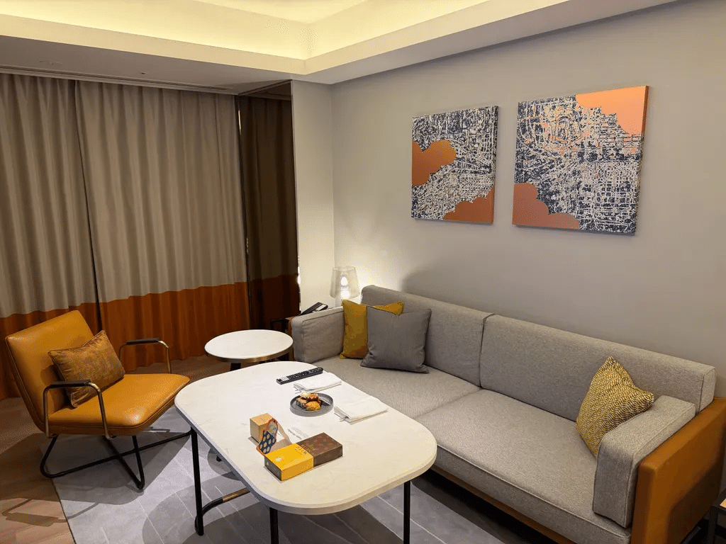 客室は特別に コーナースイートルーム(キングベッド) にアップグレードいただき、寝室とリビングが引き戸で区切られ、ゆっくりくつろげる空間に。