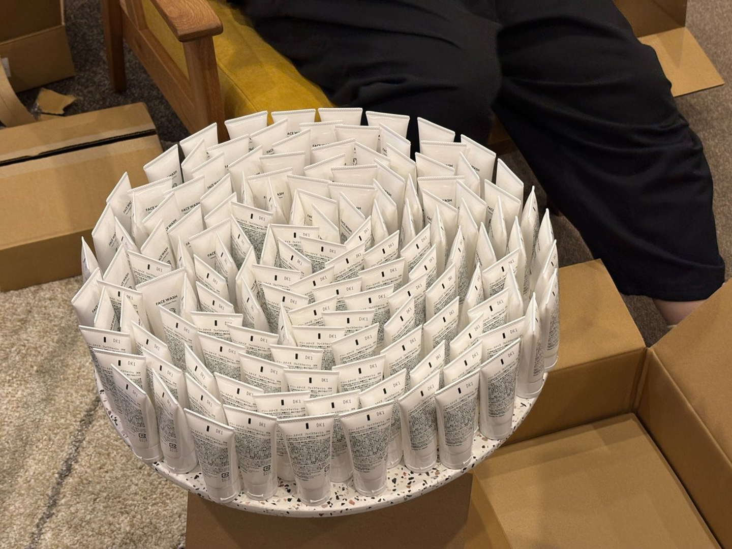そう、この日届いたばかりの新アメニティのラベル貼り作業を、ここで全員に依頼。