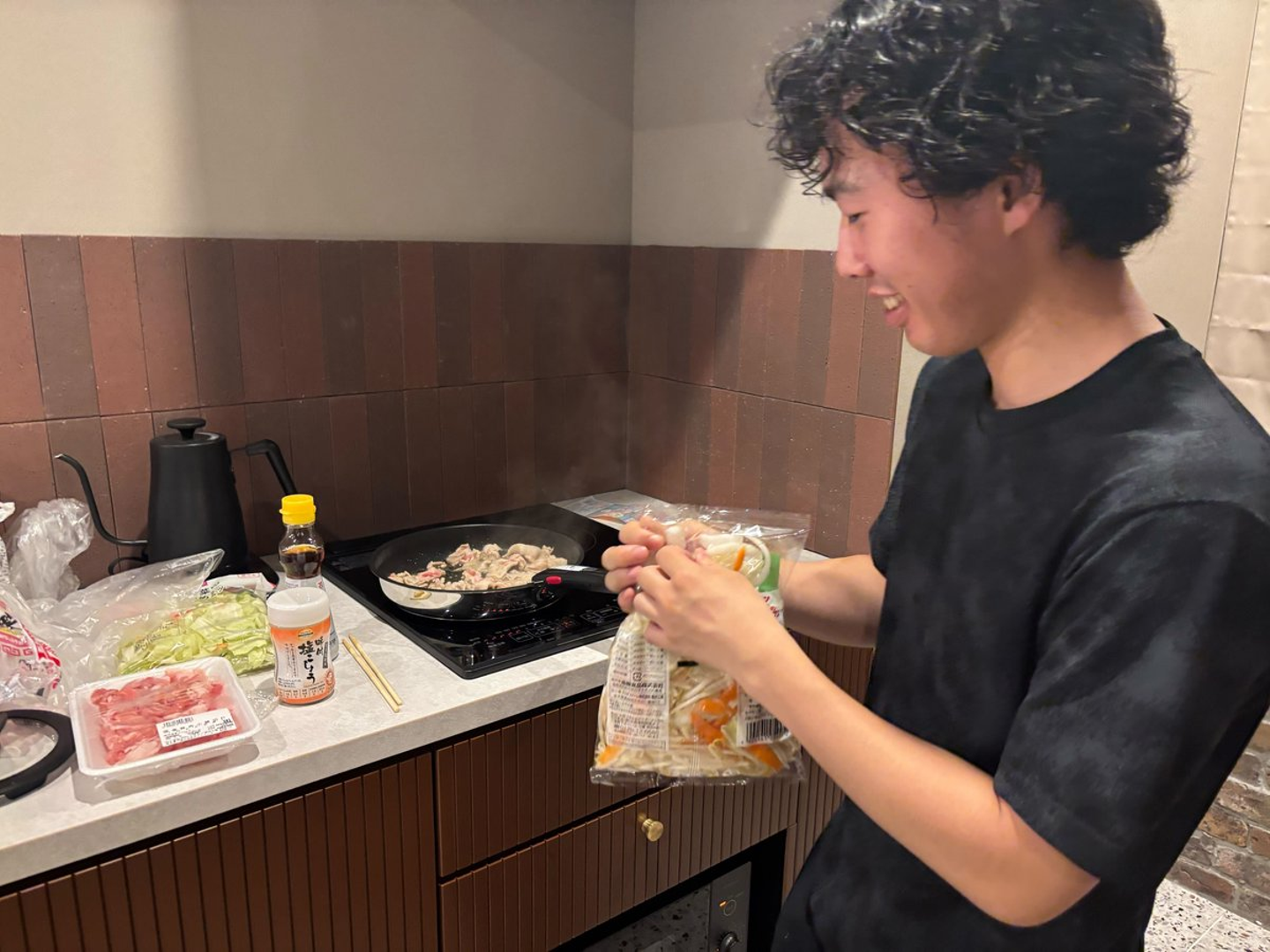 誰かが炒め、誰かが食べ、誰かが笑い、誰かが提案し、誰かが貼る。