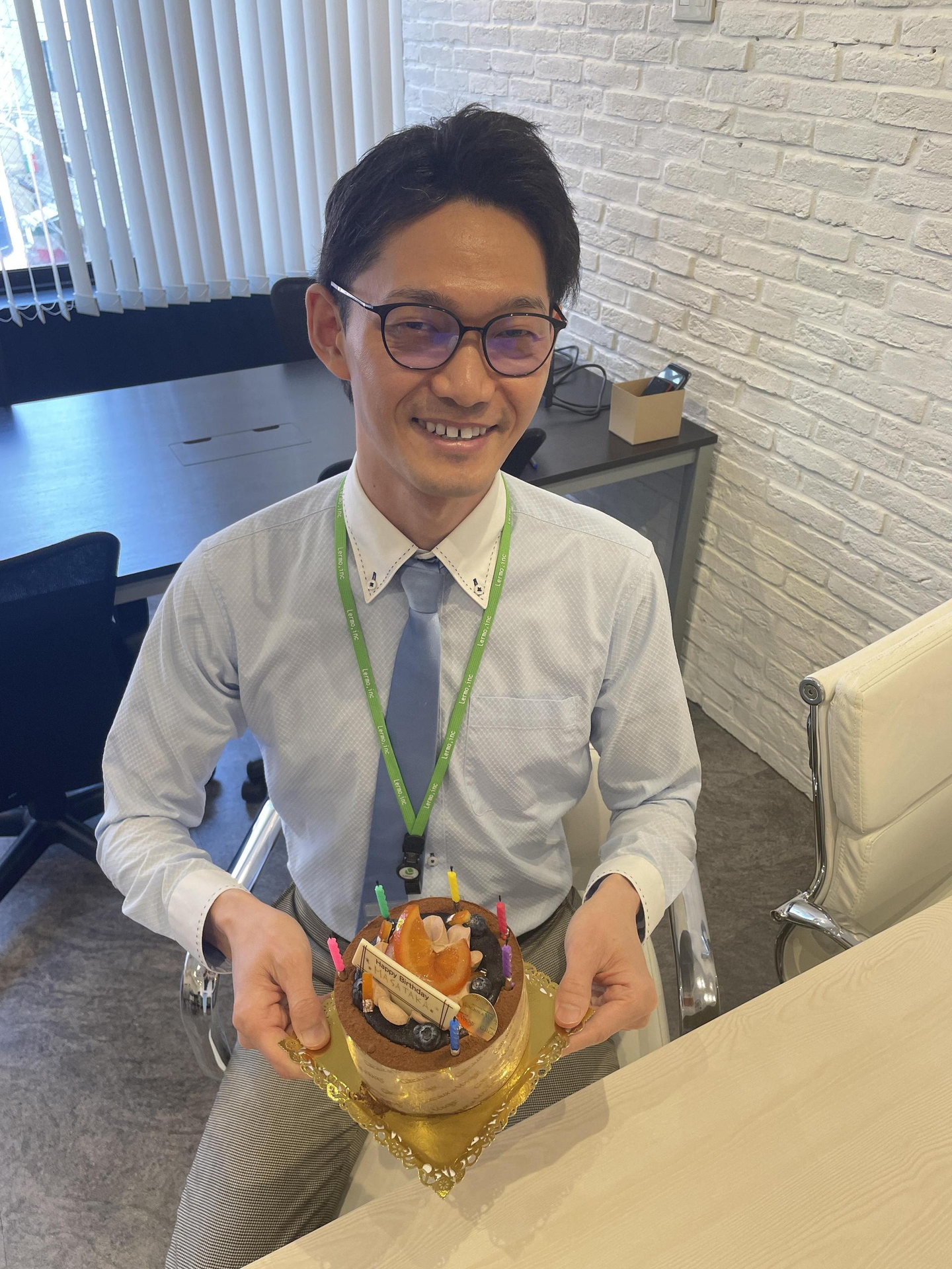 そこで、ささやかではありますがケーキを買って社員のみんなでお誕生日をお祝いしました!!