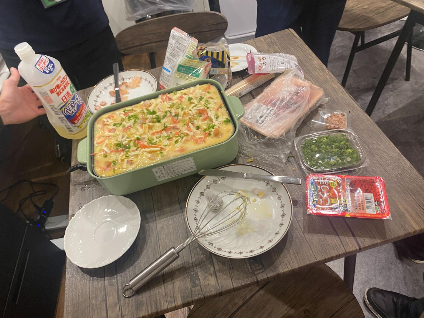 たこ焼き器の火力が弱くて少し時間がかかってしまいましたが、みんなで協力しておいしいたこ焼きが出来ました!