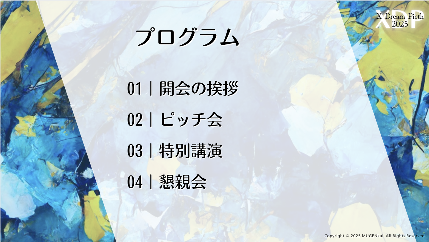 「X Dream Pitch」は、弊社の運営するコミュニティ「夢現会(むげんかい)」が主催し、2023年からスタート!今回で第3回目となります💪✨