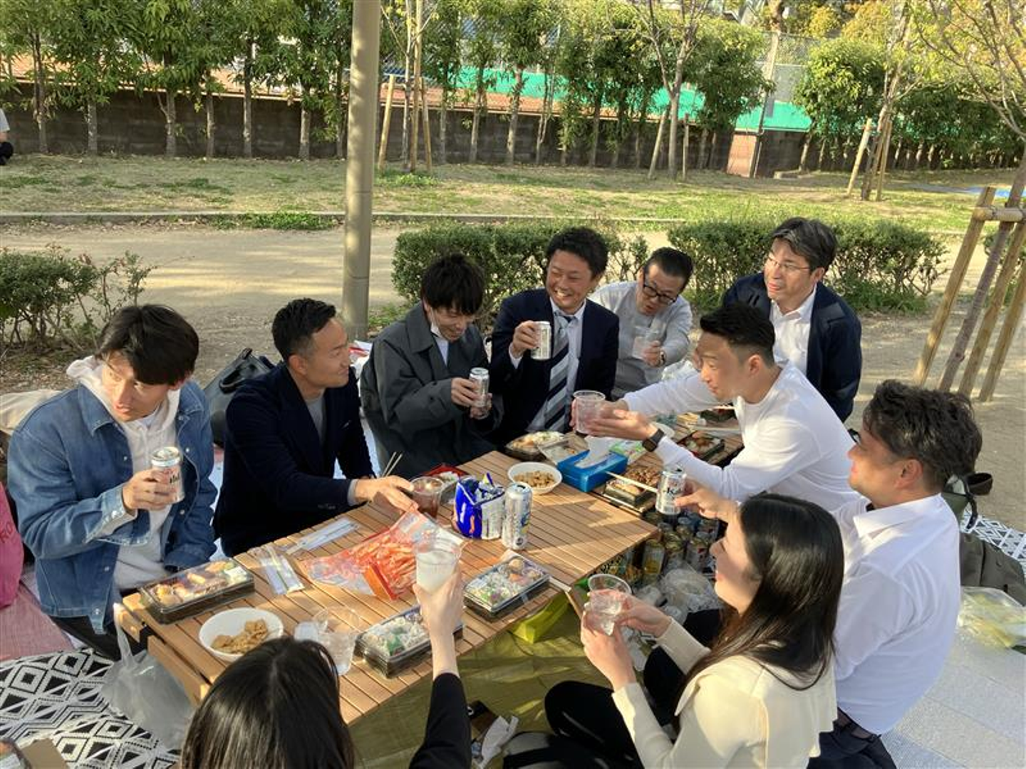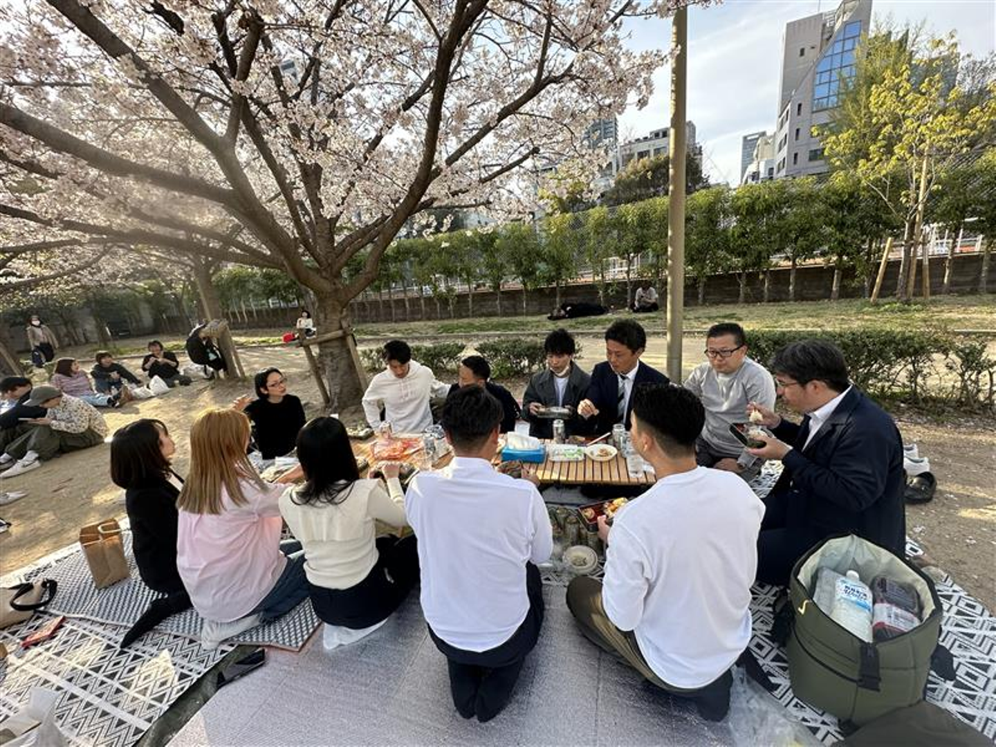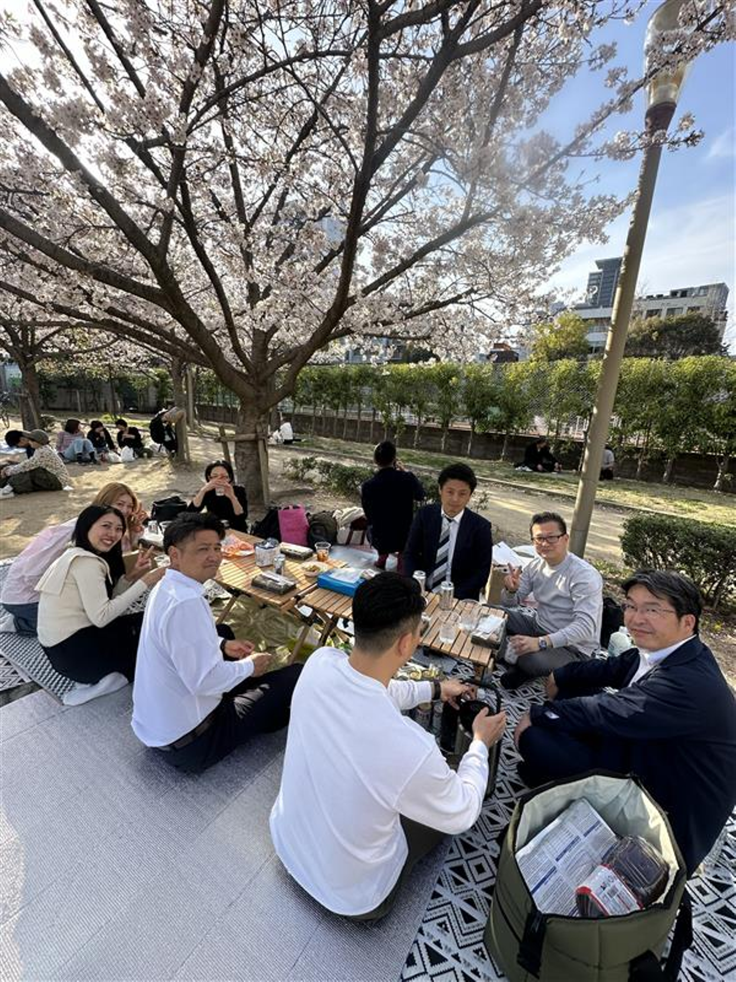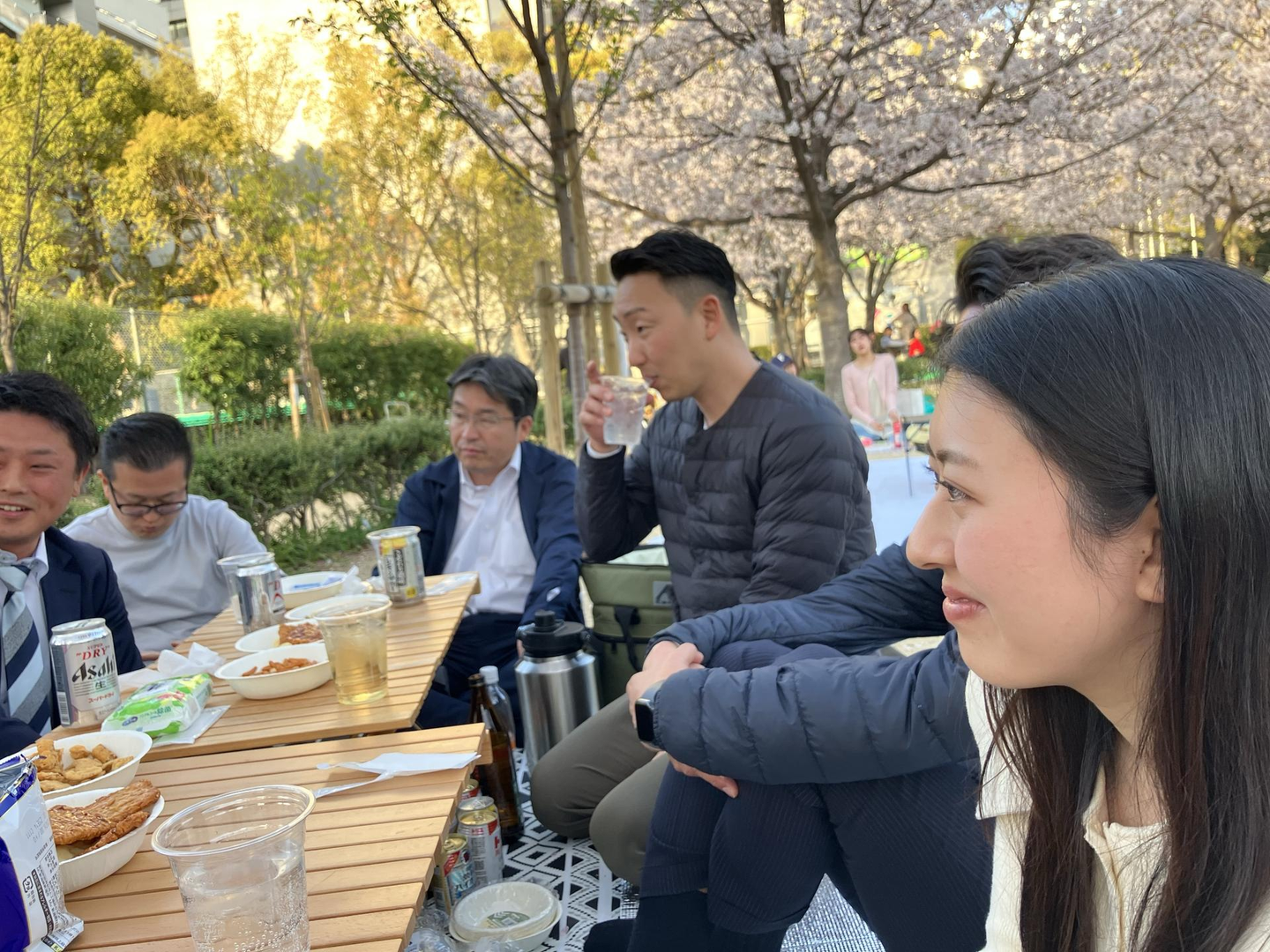 桜の花の下で、お互いの趣味や家族の話をしたり、仕事のことを少し離れてリフレッシュできたりと、普段とは違う一面を知ることができて、とても充実した時間でした。