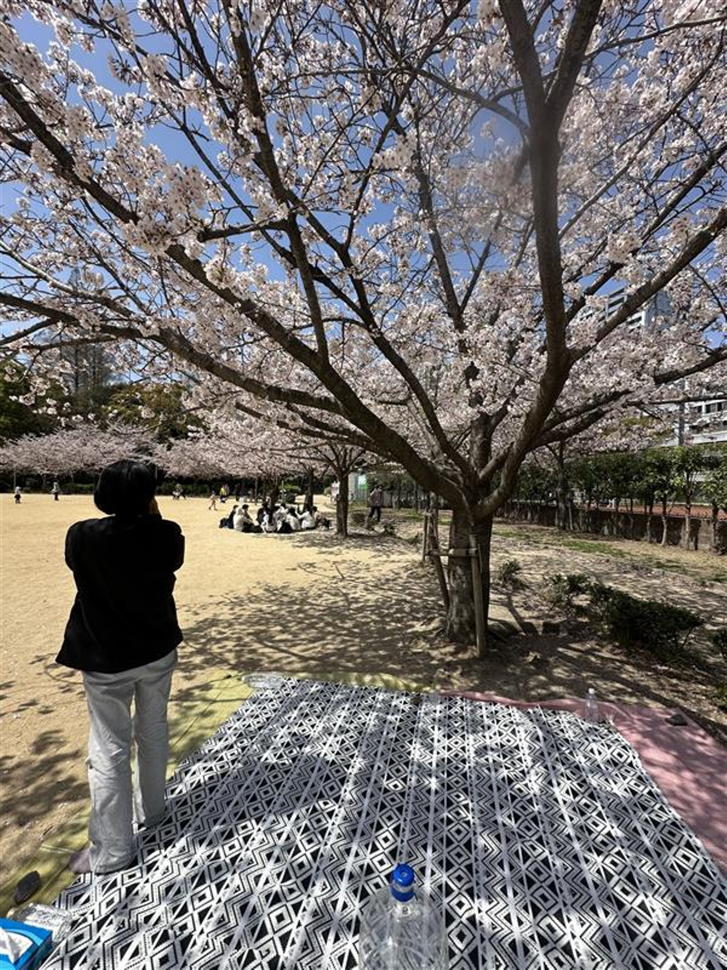 👆12時頃に靭公園に行き場所取り。大きな桜の木の下です👏