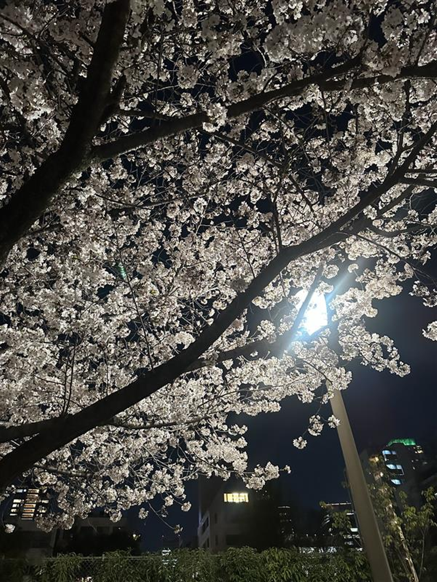 日が暮れると少し肌寒くなってきましたが、夜桜がとてもきれいで、お酒も進みました🍶🌸