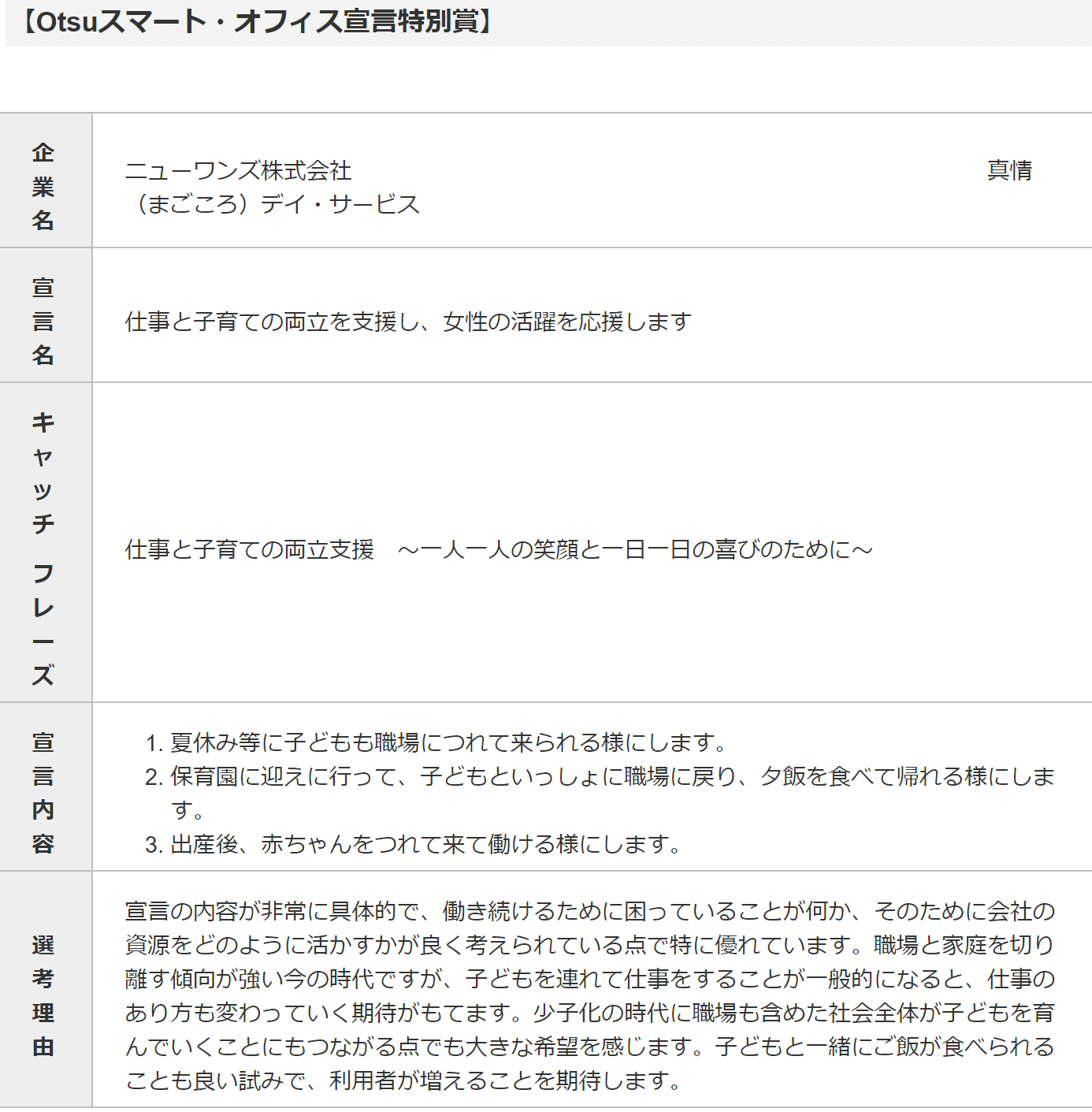 大津市では育児休業や育児休暇を取得しやすい社会環境の創出を図ることを目的として、従業員の育児休業や育児休暇の取得の推進等、従業員が働きながら子育てしやすい社内環境の整備に熱心な企業・事業所を表彰しています。