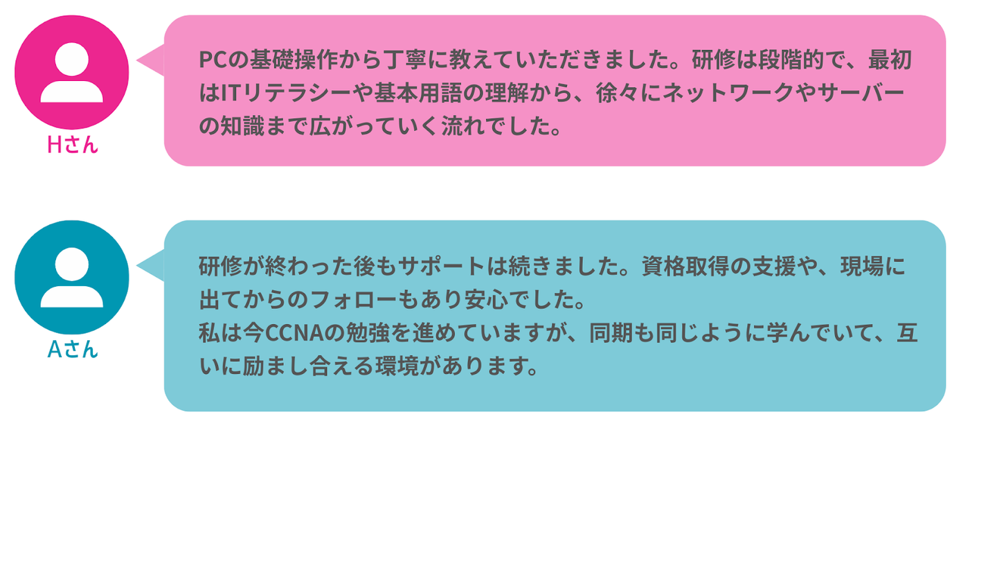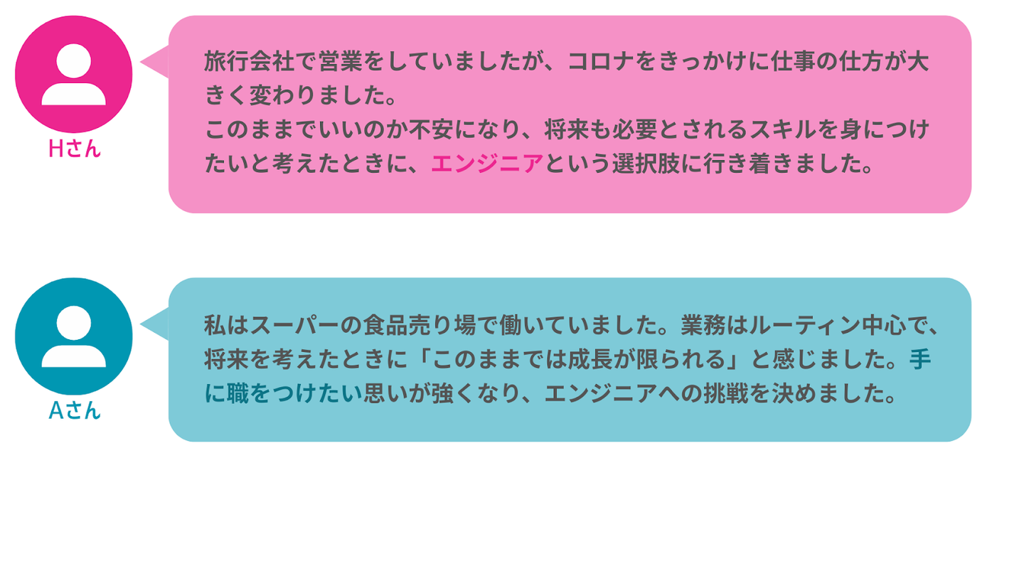 ジャパニアスには、異業種から転職し、今ではエンジニアとして活躍している社員が数多く在籍しています。今回は、旅行業から転職したHさんと、販売職からキャリアチェンジしたAさんに、未経験から挑戦したリアルを語ってもらいました。
