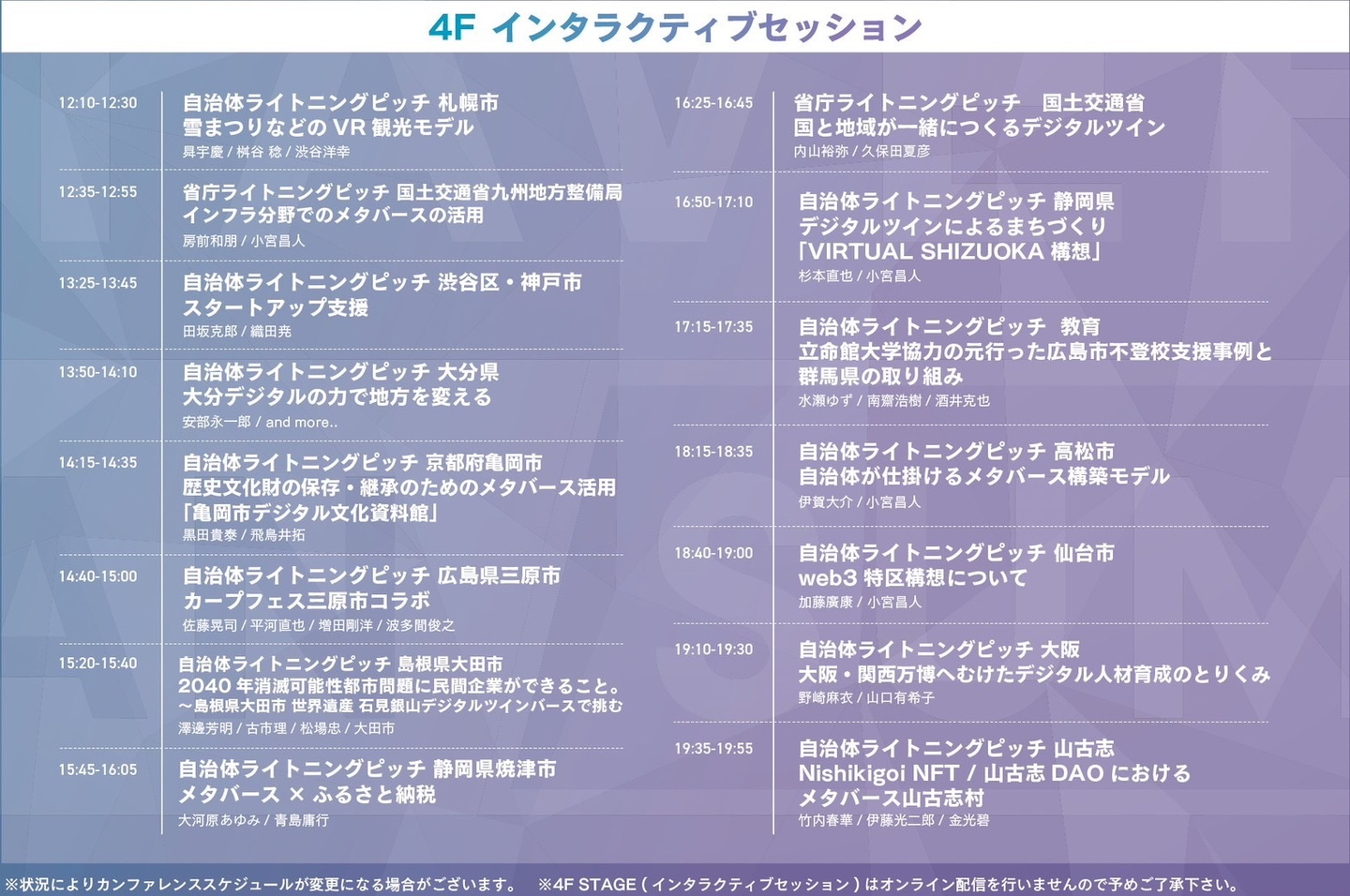インタラクティブセッション(省庁・自治体ライトニングピッチ)には、国土交通省九州局や島根県大田市、大分県、亀岡市、仙台市、神戸市、渋谷区、新潟県山古志などが参加するイベント