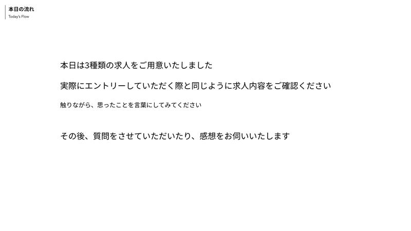 「これを検証してみよう」というよりも、「こんな聞き方をすればユーザーは話しやすいかも」ぐらいの温度感で進めていきます。