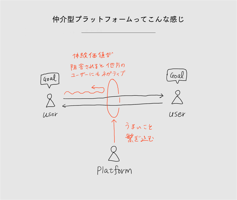 1. ユーザーには基本的にはゴールが存在する2. プラットフォーマーは異なるニーズを持つユーザー同士を適切に繋ぎこむことを命題としている