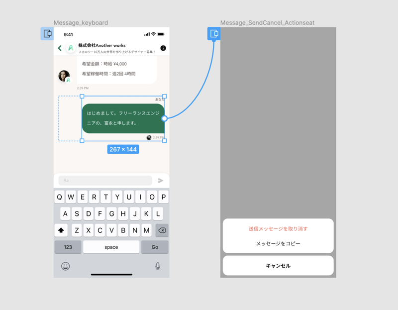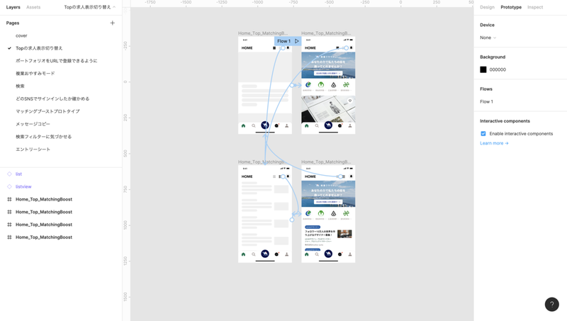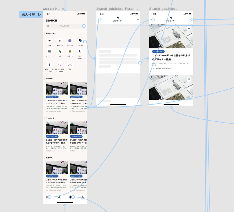 Another works社はFigmaを使ってUIを作しており、全ての画面でプロトタイプを組んでいます。