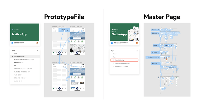 Product Fileには常に最新の状態であるMaster Pageとエンジニアが実装している/できる段階のDevelop Pageの2つがあります。Master Pageでプロダクト全体のプロトタイプを組んでいます。