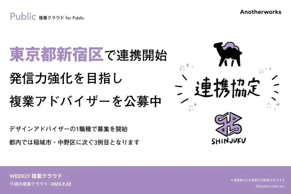 ②東京都新宿区と連携開始発信力強化を目指し、複業アドバイザーを公募中