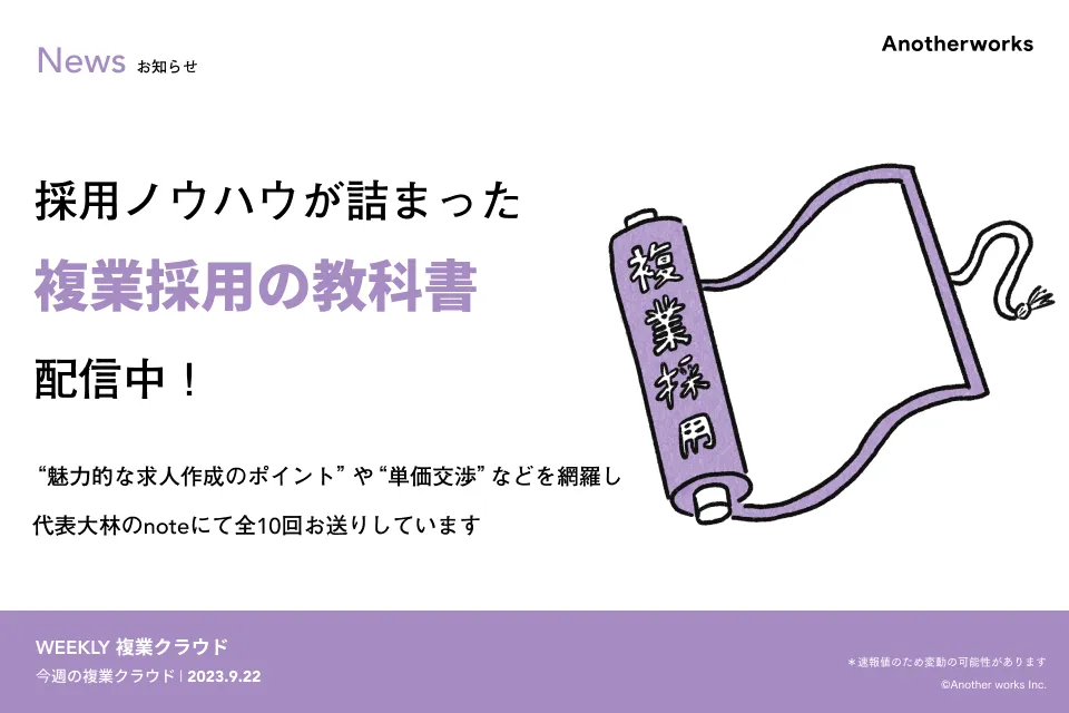2023年9月19日~9月22日、今週の複業クラウドを公開しました。