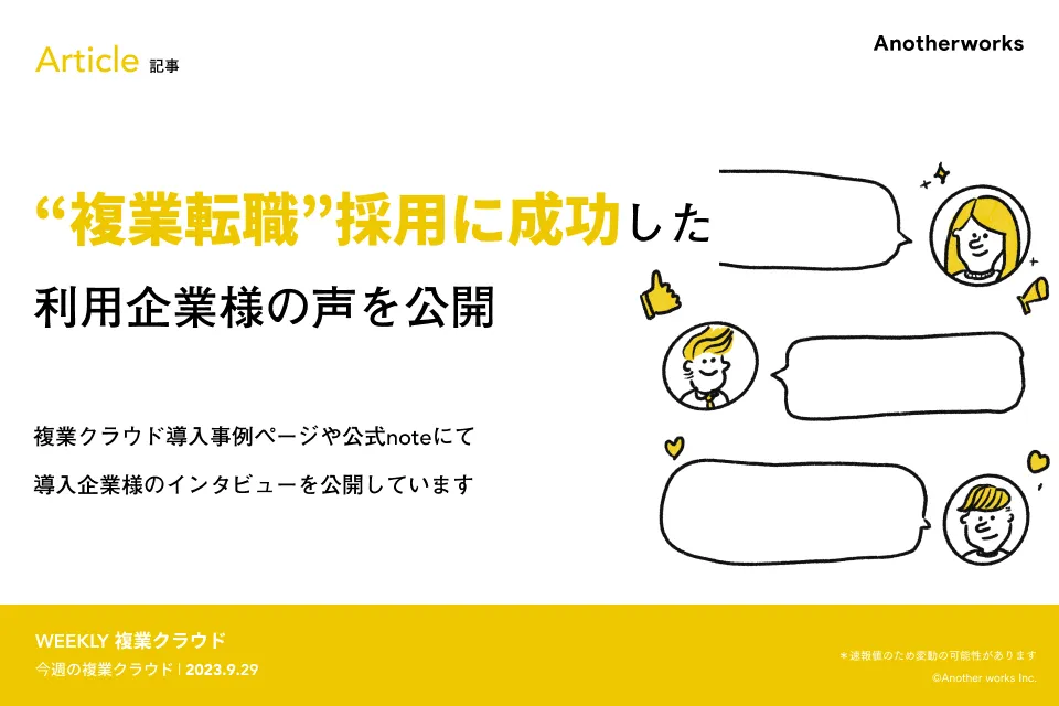 2023年9月25日~9月29日、今週の複業クラウドを公開しました。