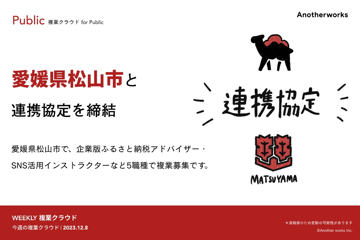 ①愛媛県松山市と連携協定を締結、5職種で複業アドバイザーを募集