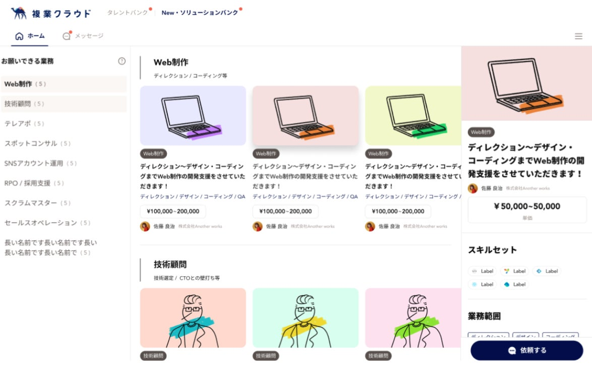 求人やスカウトが不要に!? 個人の”得意”を買うだけ、より複業依頼がしやすくなる新サービスを開始~「ソリューションバンク」単独でのサービス展開も視野に~