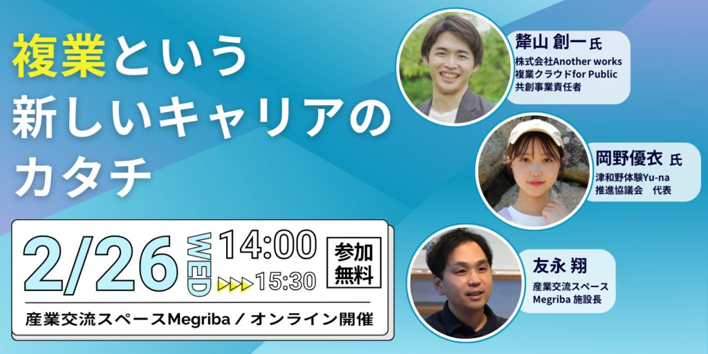 複業したい人と企業や自治体を繋ぐ複業マッチングプラットフォーム「複業クラウド」を展開する株式会社Another works(本社:東京都港区、代表取締役:大林 尚朝)は、2025年2月26日(水)山口市産業交流スペース Megribaで開催されるイベント「複業という新しいキャリアのカタチ」に、共創事業責任者の犛山が登壇することをお知らせいたします。