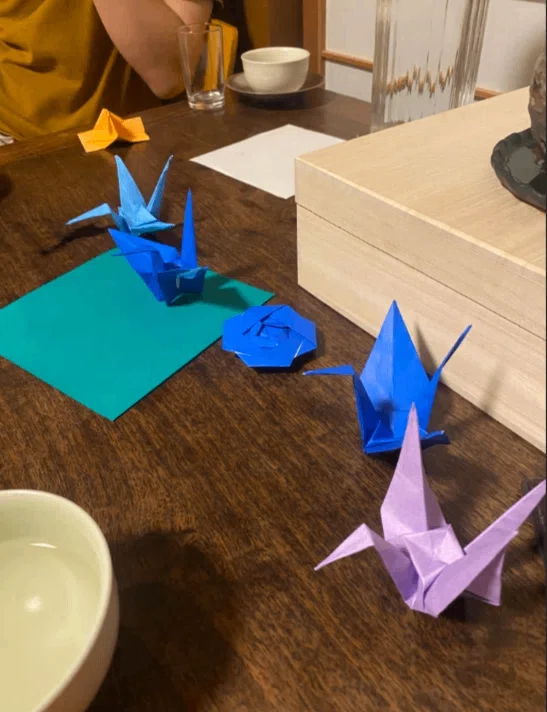 日本文化に興味のあるお客様と、Nazunaスタッフが一緒につくった折り鶴