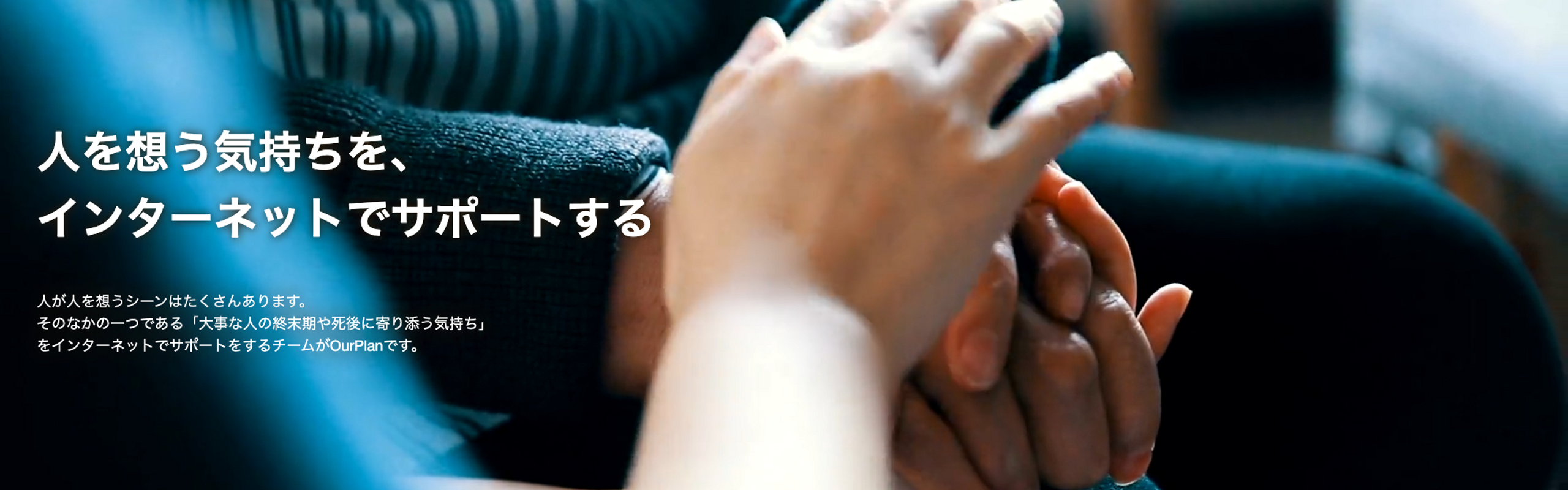 人を想う気持ちを、インターネットで形にする——OurPlanのビジョンです。高齢化は世界最先端の課題で、日本はその最前線にあります。私たちは、大切な人を亡くしたご家族の複雑な手続きをオンラインで支援。行政手続きのデジタル化や専門家マッチングを通じ、シニア領域の社会課題と成長市場に挑んでいます。